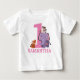 This adorable baby girl t-shirt features a design with a purple elephant with a monkey and little bird, and a lttle baby tiger with a large, pink number one. Personalise this t-shirt with the name of your choice.