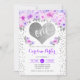 1st Birthday - Silver Heart White Purple Floral Invitation