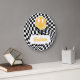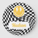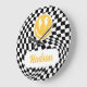 One happy dude birthday smile face retro black, white and yellow groovy lightening bolt cool birthday party decor clock.