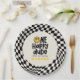 1st birthday smile face retro black white groovy paper plate