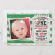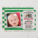 Invite your guests in style with this super cute sports football ticket 1st birthday photo party invitation. This design features a rustic background of green and white weathered wood, On the left is your baby's photo in a frame (square works best) and on the right is a ticket with all your personal information. It reads, Our Little Quarterback is turning One, Please Join us for this Epic Birthday Event, in honour of, name of your child, date of the party and address with RSVP below. Back of the card has green and white stripes in a matching weathered wood. This is a special personalised invitation your family and friends will adore and keep as a memento. Designed by artist ©Susan Coffey and Tim Coffey. Photography © Storytree Studios, Stanford, CA.