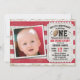 Invite your guests in style with this super cute sports football ticket 1st birthday photo party invitation. This design features a rustic background of red and white weathered wood, On the left is your baby's photo in a frame (square works best) and on the right is a ticket with all your personal information. It reads, Our Little Quarterback is turning One, Please Join us for this Epic Birthday Event, in honour of, name of your child, date of the party and address with RSVP below. Back of the card has red and white stripes in a matching weathered wood. This is a special personalised invitation your family and friends will adore and keep as a memento. Designed by artist ©Susan Coffey and Tim Coffey. Photography © Storytree Studios, Stanford, CA.