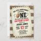 Invite your guests in style with this super cute sports football ticket 1st birthday party invitation. This design features a rustic background of brown and white weathered wood, In the centre is a football with all your party details on a ticket shape. It reads, "Our Little Quarterback is turning One, Please Join us for this Epic Birthday Event, in honour of, name of your child" date of the party and address with RSVP below. Back of the card has brown and white stripes in a matching weathered wood. This is a special personalised invitation your family and friends will adore and keep as a memento. Designed by artist ©Susan Coffey and Tim Coffey.