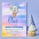Invite friends and loved ones to celebrate your baby boy’s 1st birthday with this cute teddy bear holding blue balloons while floating through a starry sky invitation.