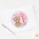 1st Birthday Teddy Bear Pink Custom Classic Round Sticker