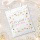 This pretty pink "twinkle twinkle little star" themed birthday favour bag is perfect for a baby girl's first birthday party. It features a star pattern on a white background, faux glitter accents, and text that you can customise with your own details. The template is customisable in the listing editor.