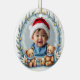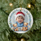 Celebrate your little one’s first holiday season with our Bear Hugs & Baubles custom ceramic ornament. This charming keepsake features your baby’s photo framed by a festive wreath of green leaves, white flowers, and golden berries, with two cozy teddy bears in winter scarves nestled beside a wrapped gift. It’s a heartwarming blend of seasonal sparkle and childhood wonder—perfect for commemorating your child’s first Christmas with love and joy.