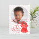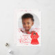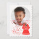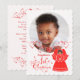 Pretty dark skinned angel holding a red candle lights the way to a delightful first Christmas greeting for baby girl with custom photo and name that will be a treasured keepsake. Angel’s dress and wings are covered with vintage red lace pattern. Delicate red star swirls add a festive touch. Add your baby’s photo and name using the template provided. Verse on the back of the card may also be personalised. Blessings, hugs and love for baby girl on their first Christmas.
