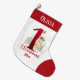 1st Christmas Stocking for a baby girl with cute Christmas deer with Christmas flowers in the snowy forest and big red number one. Easily personalise the name and the year. - Kate Eden Art