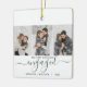 1st Christmas Engaged 3 Photo Green Script Ceramic Ornament