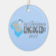 1st Christmas Engaged 2013 Xmas Ornament (Blue Background)...You're finally engaged! You got the diamond ring and are going to be the bride! Bling bling I got the ring! It's time to start planning the wedding of your dreams. Commemorate your engagement with this unique Christmas ornament as you begin your lives together. A great gift for any bride to be from any groom to be or maid of honour or bridesmaid to be. Perfect wedding shower, bridal shower, or bachelorette party gift idea for any bride to be. Design features a big and sparkly diamond ring in a stylish blue ring box. It's dated and is customisable with the year that you got engaged. The back of the ornament features the words "Soon To Be Mrs." Just enter in your future last name and you're ready to go.