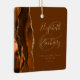 This elegant modern ornament features a burnt orange watercolor agate design trimmed with faux gold glitter. Easily customise the gold-coloured text on a nutmeg background, with the names of the bride and groom in whimsical handwriting calligraphy over a large ampersand. The words "First Christmas Married" appear in serif font along with the customisable year.