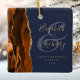 1st Christmas Married Burnt Orange Agate Navy Blue Ceramic Ornament
