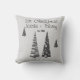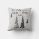 On this stylish pillow is a grey back drop with white snow flake dots and festive christmas trees with ornate designs also can be personalised with names and dates. Festive cheery christmas decor