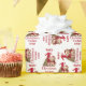 1st Christmas Wrapping Paper with a name with a cute Christmas teddy bear with Santa hat Christmas tree and big red number one. Easily personalise the text. - Kate Eden Art
