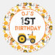 Yellow construction theme design for a boy's birthday party featuring works tractor, highway traffic road cones, (witches hats) warning signage and other equipment all on a white background. Great to add to Birthday party favour bags and envelopes. Personalise by changing the name and age. Matching party items available. - Have a great party!
