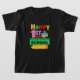 The t-shirt feels and looks great quality, a good thick cotton. It will be a little big for my son, but that means he will be able to wear it and not out grow it too soon. The print was as described on the order when personalised. True size, shape and colour T-shirt- thanks.