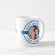 Commemorate his first father's day with this modern blue and white 2 photo mug. Featuring a retro circle with 'Best Daddy in the World', EST. and year, the design repeats on the back, and each one displays a different photo. Copyright Custom Photo Gifts, all rights reserved.