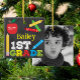 This is a lovely ornament, and great that you personalise the back with details of birthday, weight, etc.. My only tiny disappointment is the "My First" doesn't stand out very well on the background. More than happy with the printing of the photo and the writing on the back.