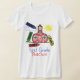 A 1st Grade teacher t shirt featuring a schoolhouse scene which appears to have been coloured by a child with crayons in red, yellow, blue, and green which surround the illustration. Schoolhouse is red with illustrations of grass, a cloud, and the sun accenting the design. Red text reads "First Grade Teacher." Back side features a single red crayon. Personalise with your name under crayon. Look for matching items in the "Crayons" category of The Pink Schoolhouse.
