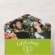 Celebrating 1 year of love wedding anniversary party event with photo and detachable RSVP invitations. Invites can be sealed so no envelopes are required. A green peridot line art gemstone in a heart shape printed graphics wedding anniversary invitations, personalise with your own wedding anniversary party details, a photo of the happy couple on the inside flap. Make it easy for you and your guests to send as no envelope is required with this one, all you have to do is simply handwrite on your sealed invitations and your guests can reply with the detachable rsvp, affixing a stamp for even quicker and easy guest responses. The first wedding anniversary is associated with the gemstone peridot and the heart symbolises love. Other matching items are available. Graphic line art and design by Sarah Trett for www.mylittleeden.com and www.mylittleedenweddings.com