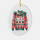 Present the winner of your Ugly Christmas Sweater contest with fun Christmas tree ornament. Perfect as a unique gift, too. Great stocking stuffer! Text can be changed. AI assisted graphic purchased with commercial use. Artwork: EnchantDigital