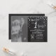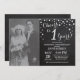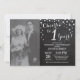 1st Wedding Anniversary with custom photo. Chalkboard Black and Silver Invitation. Chalkboard Black and Silver Glitter Diamond Background. Silver Confetti. Adult Birthday. Woman or Man Male Birthday Party. For further customisation, please click the "Customise it" button and use our design tool to modify this template.