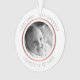 This personalised Christmas ornament features a modern faux rose gold design. Personalise the name, year and photo. It is double sided. The front will have a black and white photo and the back has your original colour photo. This template works best with landscape format photos with the subject in the centre.