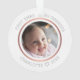 This personalised Christmas ornament features a modern faux rose gold design. Personalise the name, year and photo. It is double sided. The front will have a black and white photo and the back has your original colour photo. This template works best with landscape format photos with the subject in the centre.