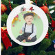 Celebrate the season with this charming photo glass ornament, thoughtfully designed in a whimsical gingerbread‑and‑candy cane motif. Crafted from clear glass, it features a vibrant gingerbread man holding a red‑and‑white candy cane, framed by holly‑leaf accents and festive ribbon. The glass front is personalised with a favourite photograph — making this ornament both decorative and sentimental.