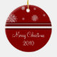 Merry christmas 2010 ornament in elegant red and white with festive snowflake pattern. A stylish christmas gift for family and friends or to decorate your christmas tree or home for the holidays.