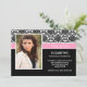 Start off you event right with our classy 2011 Black damask photo graduation invitation / announcement. Perfect graduation invitation for a high school graduation or college graduation. Just fill in your information add your photo and you're all set to go. Visit our shop at www.celebrateitgraduations.com for a large assortment of graduation invitations!