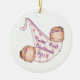This adorable Twins First Christmas Ornament feature twin girls all wrapped up ready for the stork to deliver.
