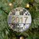 Now, new is 2017 in gold! Beautiful mosaic silver popular round shape abstract bling design with a shiny disco party mirrorball look on both sides makes a festive and great Christmas, Hanukkah, or New Year holiday ornament, favour or gift! Great for kids, teens, men and women of all ages! Now you can easily add any custom text onto the silver look plate to personalise names, dates, special occasion, etc. Add any text to the other side, or delete if none is needed. Great New Years party favours, give aways and souvenirs for the new year!