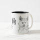 Ink wash painting of Shiba Inu dog with Dog ideogram on lightgrey background. Customisable two-tone mug (model n°4). The Chinese character simply mean "Dog". Perfect for wishing Happy Chinese New Year 2018 for everyone or birthday (people born in Dog Year). ----- "The Dog (狗) is one of the 12-year cycle of animals which appear in the Chinese zodiac related to the Chinese calendar. The Year of the Dog is associated with the Earthly Branch symbol 戌. The character 狗 refers to the actual animal while 戌 refers to the zodiac animal. (...) People born within these date ranges can be said to have been born in the "Year of the Dog", while also bearing the following elemental sign: