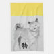 Ink wash painting of Shiba Inu dog with black Dog ideogram on grey background. Customisable yellow kitchen towel (model n°3) with year in light yellow. The Chinese character simply mean "Dog". Perfect for wishing Happy Chinese New Year 2018 for everyone or birthday (people born in Dog Year). ----- "The Dog (狗) is one of the 12-year cycle of animals which appear in the Chinese zodiac related to the Chinese calendar. The Year of the Dog is associated with the Earthly Branch symbol 戌. The character 狗 refers to the actual animal while 戌 refers to the zodiac animal. (...) People born within these date ranges can be said to have been born in the "Year of the Dog", while also bearing the following elemental sign: