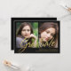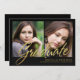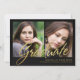 Elegant but and simple 2-photo grad announcement with trendy faux gold foil handwritten script lettering and subtle shadow filter. Optional graduation party invite text on back.