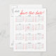This charming save the date features a 2020 calendar with your special date marked. To put the red heart on your special date, click "customise." Then you'll be able to click the heart on the image and move it to your own date.