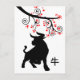 2021 Chinese New Year Ox and Red Blossoms Postcard