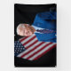 The photograph captures a moment in 2021 of President Joe Biden, image is now one of his official US Presidential photo. Sunlight streams through a window, casting a warm glow on the figure of an Biden standing confidently in the centre of the frame. His arms are crossed, a gesture that suggests both authority and a hint of casual ease. --- Mr. Biden is dressed impeccably in a blue suit, the crisp fabric contrasting sharply with the clean lines of his white shirt. A blue and red striped tie adds a touch of personality to the ensemble. --- A glimpse of patriotism is evident in the background. An American flag stands proudly on a pole to the man's left, its vibrant colours a bold contrast to the solid black behind Joe. A closer look reveals a painting hanging on the wall, adding a touch of personal flair to the professional atmosphere. --- President Biden is the focal point of the image. His short white hair frames a kind face, etched with the lines of a life well-lived. A warm smile plays on his lips, conveying a sense of confidence, wisdom, and perhaps a hint of amusement.