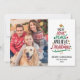 This stylish 2021 Christmas photo card features the typography Joy, Love, Peace, Believe, Christmas alongside your family photo. Personalise with your greeting and family name.