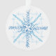 2021 Vaccine in multiple fonts in the shape of a snowflake. The type is in light blue on a white background. On the back, customisable family name and other verbiage on a blue snowflake background. Currently reads "2021 : The year of vaccines." You could change that to your vaccination date(s), commemorate that you are all vaccinated, etc ...