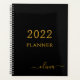 2022 Black Gold Girly Script Monogram Name Modern Planner
