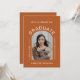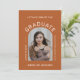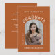 Elegant solid terracotta and white typography graduation party invitation with a trendy arch shape photo and modern look. +++++++++++++ Easy to personalise with your picture and details on both sides!