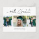 2022 Hello Graduate Modern Script 3 Photo Grad Announcement Postcard