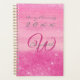 Monogrammed Planner in pink ombre shimmer. The title, year, your name and your initial are all fully editable and are lettered in casually elegant script typography, in grey and hot pink. The sample title reads "Busy Planning 20xx" which you can edit as you wish. The design is set against a pretty background of woodgrain and glitter dust in pink ombre. Please browse our store for coordinating designs.