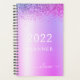 2022 Purple and White Faux Sparkle Glitter Monogram Name and Initial Metallic Stainless Steel Spiral Notebook Wedding Event Calendar Planner. This makes the perfect sweet 16 birthday, wedding, bridal shower, anniversary, baby shower or bachelorette party gift for someone that loves glam luxury and chic styles.