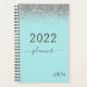 2022 Silver Teal Aqua Blue Girly Glitter Monogram Planner