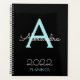2022 Teal Aqua Blue Black Monogram Elegant Planner