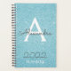 2022 Teal Aqua Blue Sparkle Glitter Monogram Name and Initial Spiral Notebook Planner. This makes the perfect sweet 16 birthday, wedding, bridal shower, anniversary, baby shower or bachelorette party gift for someone that loves glam luxury and chic styles.